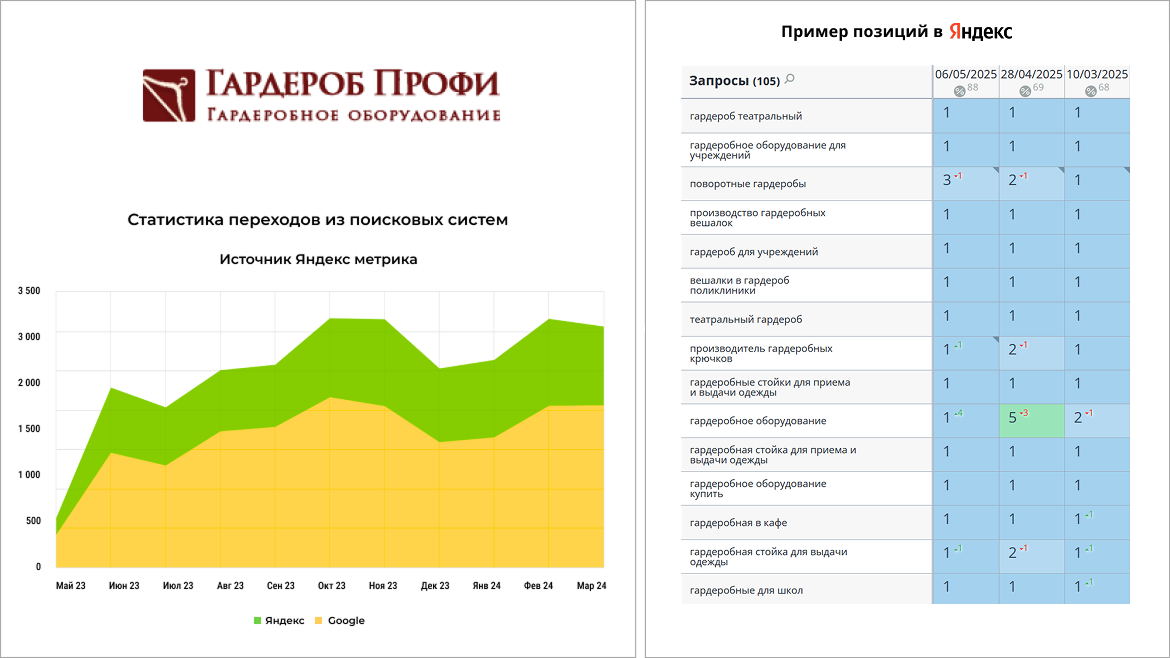 Результат: 90% всех запросов в топ-10 Яндекс и Google, при сохранении индивидуального позиционирования.
